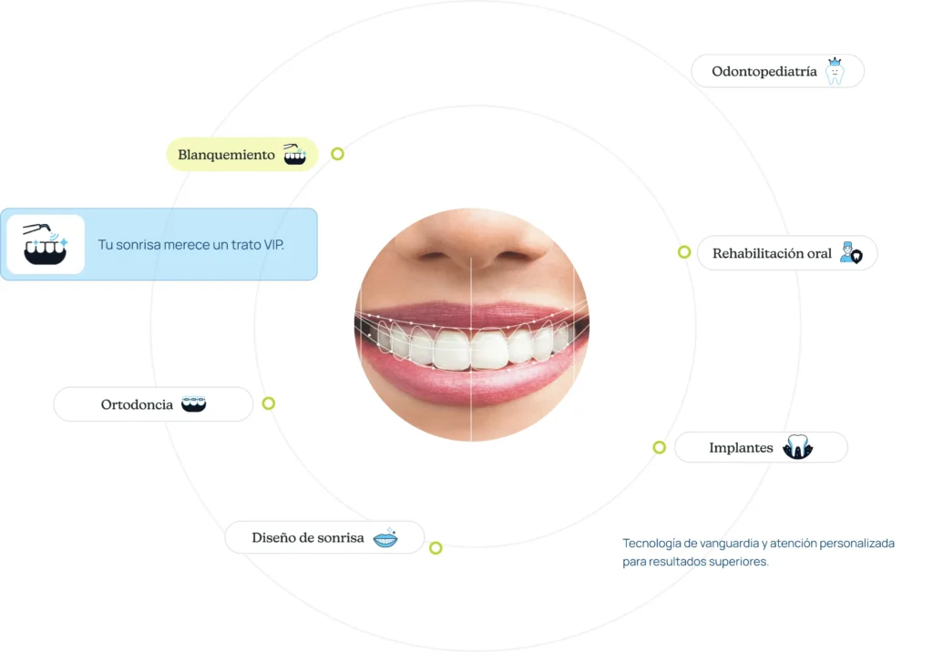 El servicio VIP se adapta a tus necesidades. Puede incluir una amplia gama de tratamientos, desde estética dental avanzada (como carillas de porcelana y diseño de sonrisa), rehabilitaciones complejas con implantes, hasta ortodoncia de alta gama (con alineadores transparentes). El plan se diseña a la medida de cada paciente.